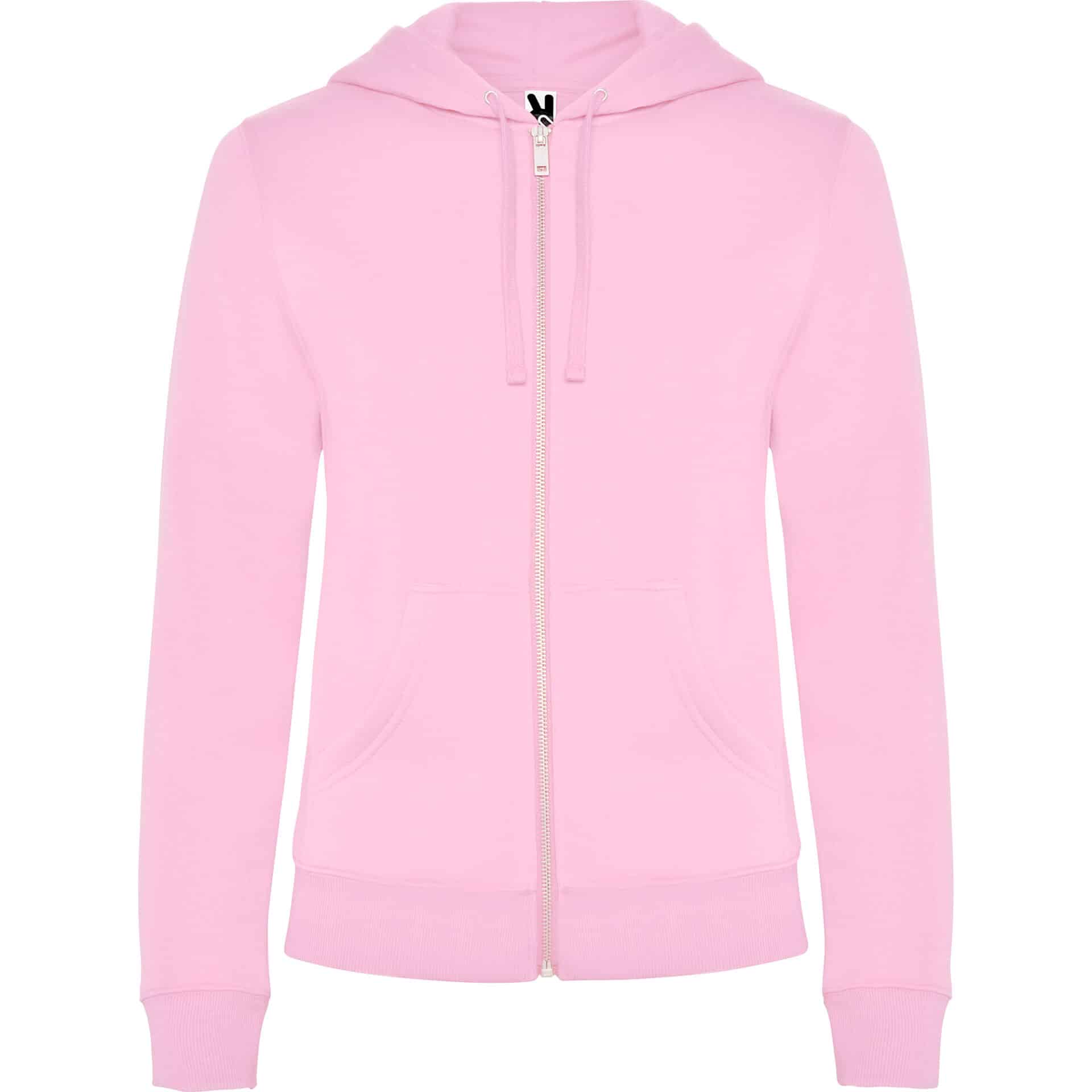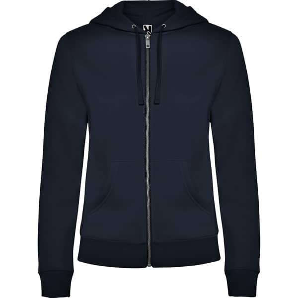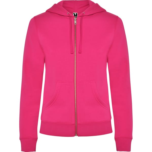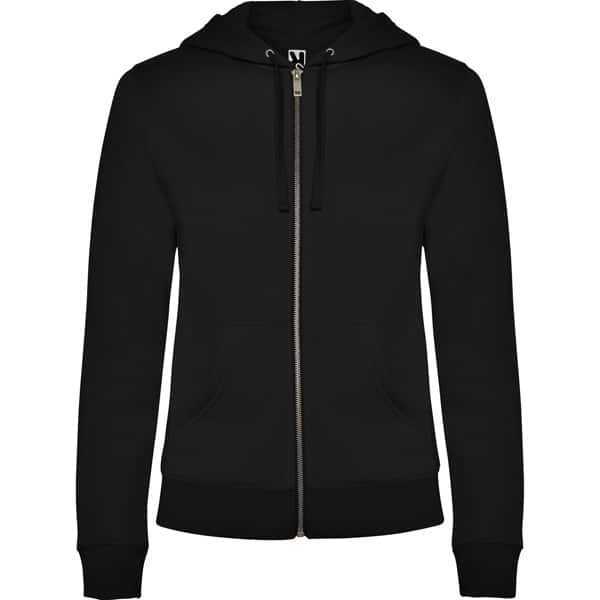 Sweatshirt ajusté avec fermeture zippée sur le devant et capuche. Fermeture à glissière en métal. Poches kangourou, poignets et taille côtelés 2×1 avec élasthanne. Cordon de serrage plat assorti dans la capuche. Coutures bordées de tissu assorti.