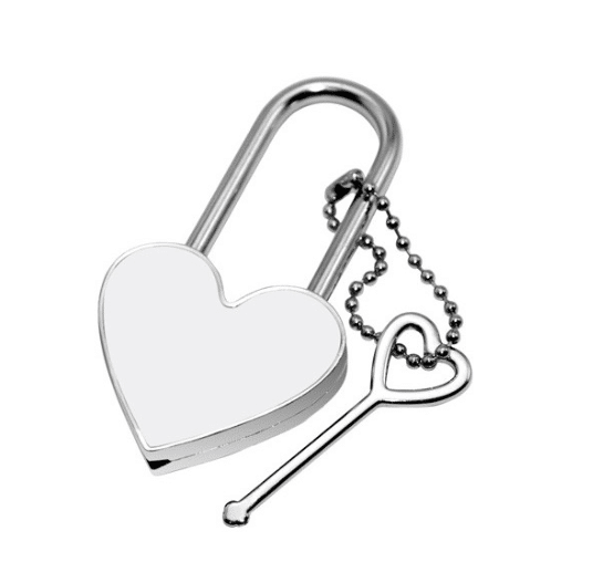 Cadenas cœur personnalisable par sublimation en métal avec plaque aluminium sublimable. Livré avec une petite clef + chaînette.