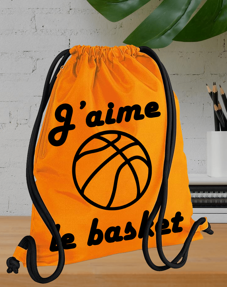 Impression DTF thème basket avec prénom (à la place de “j’aime le basket”) possible. Indiquez le prénom à inscrire dans l’espace commentaire lors de la validation de votre commande.