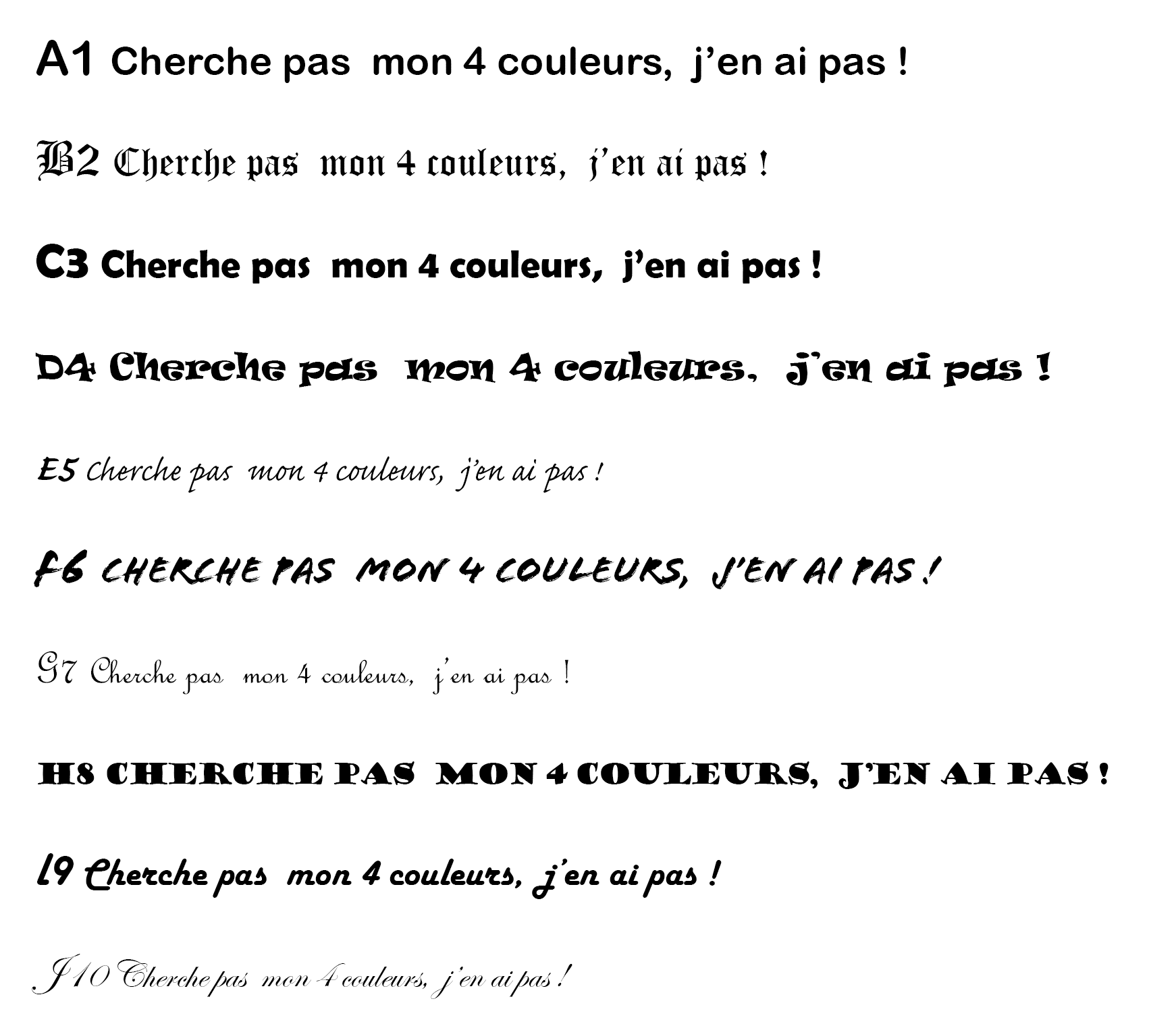 Visuel : “Cherche pas mon 4 couleurs” disponible sous différentes typographies
