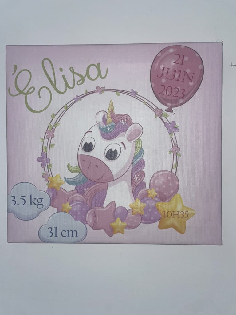 Toile Canva réalisée avec impression Latex. cadeau de naissance