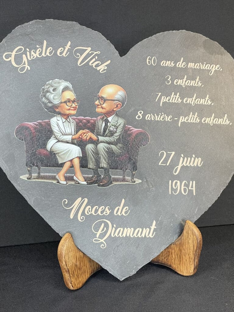 Bloc ardoise coeur personnalisé en  UVDTF. cadeau d’anniversaire de mariage