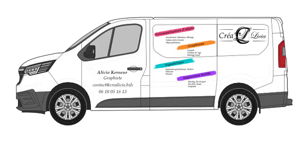 Avec Créa’Licia, vous profitez d’un service clé en main, de la création de vos visuels au marquage de votre véhicule :